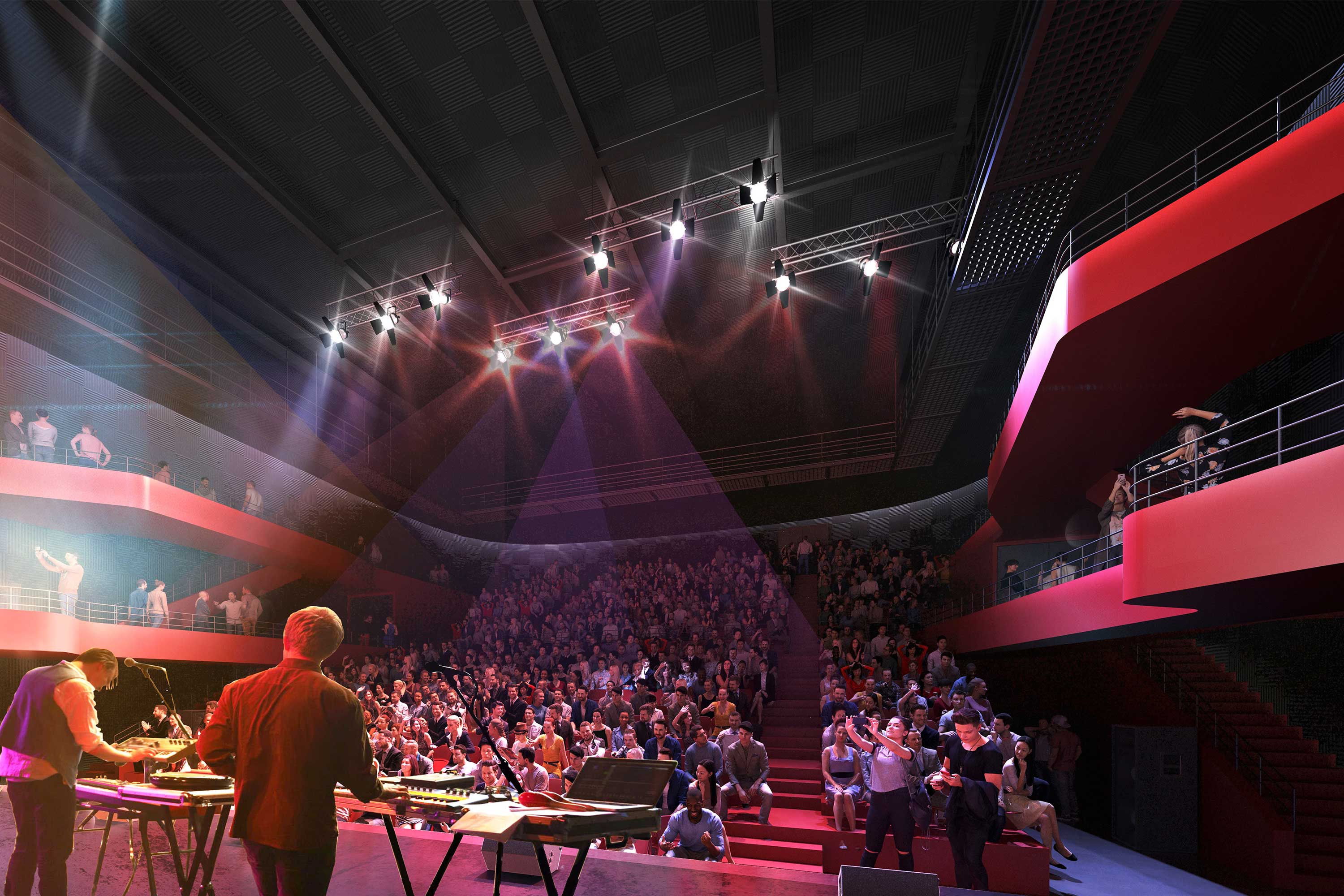 Le projet est une « machine à spectacle » qui doit fonctionner parfaitement. Elle est destinée à un public majoritairement jeune qui nous inspire une architecture efficace et sensible dans laquelle il n’y a pas de place pour le superflu. Le bâtiment répond à l’énergie de la musique, celle d’aujourd’hui et celle de demain.